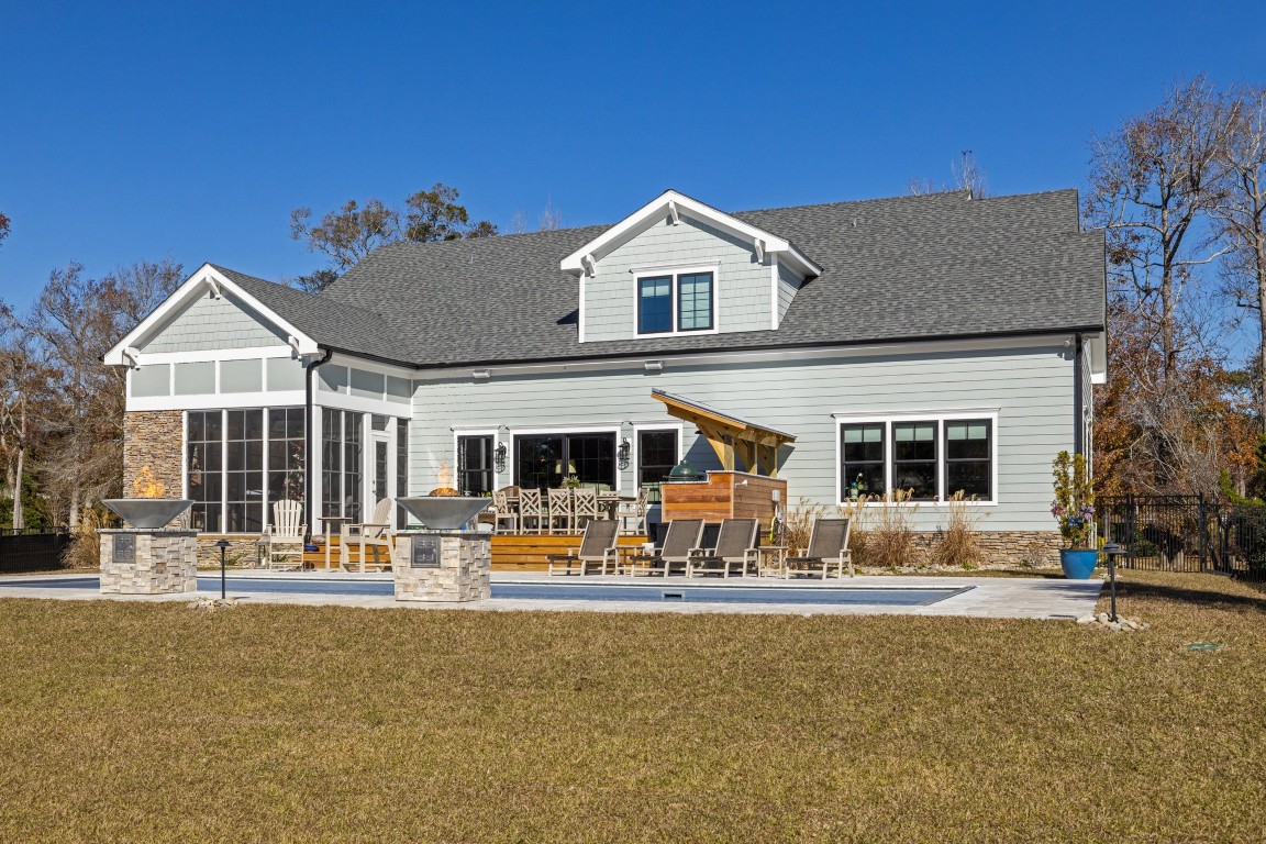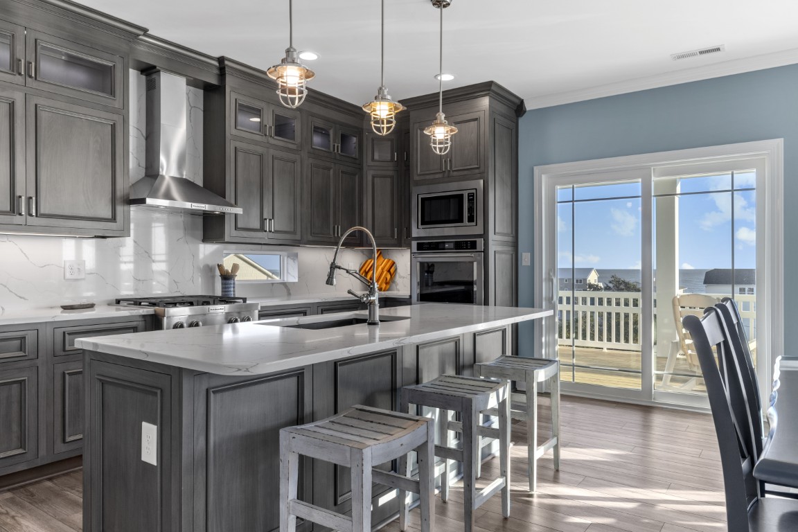 One of the perks of being a Home Builder Emerald Isle NC is having a breathtaking view right in your backyard. Add to that an outdoor kitchen, a pool with fire bowls, a lounge area on the patio, and you cannot paint a better picture – the beautiful skies, the water in the background, and the relaxing ambiance that pours through every shot. Not only will you have the photographs that our photographer has taken but imagine the many more memories that you will be able to capture in still life images and amazing videos for yourself in your forever or vacation home. We love to see the shared photos of the homes growing with you as the years pass.
